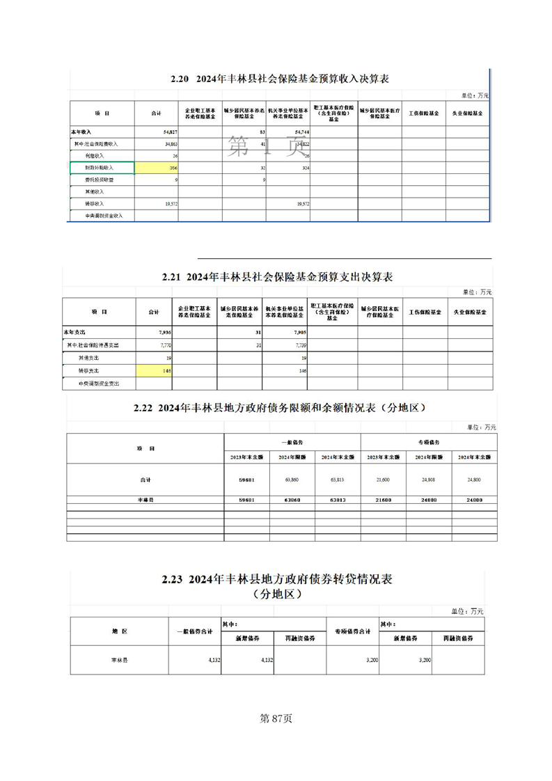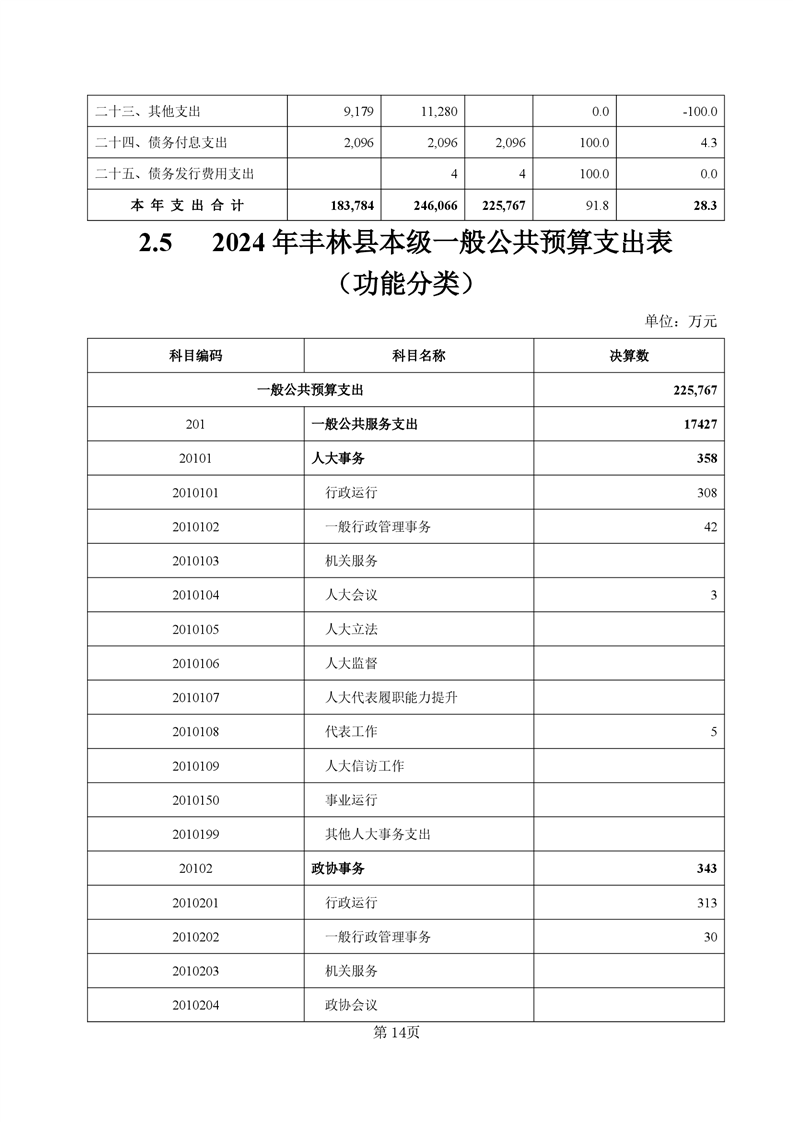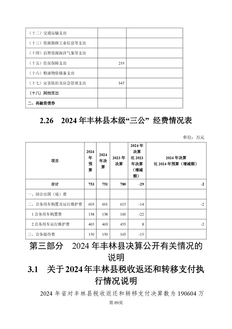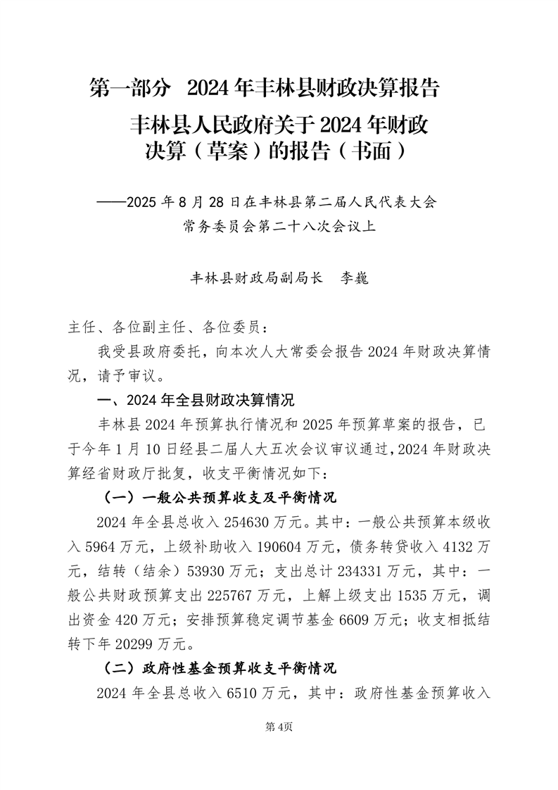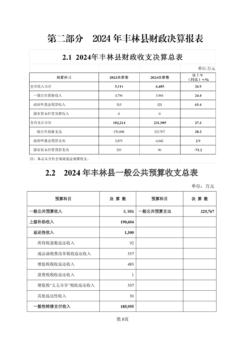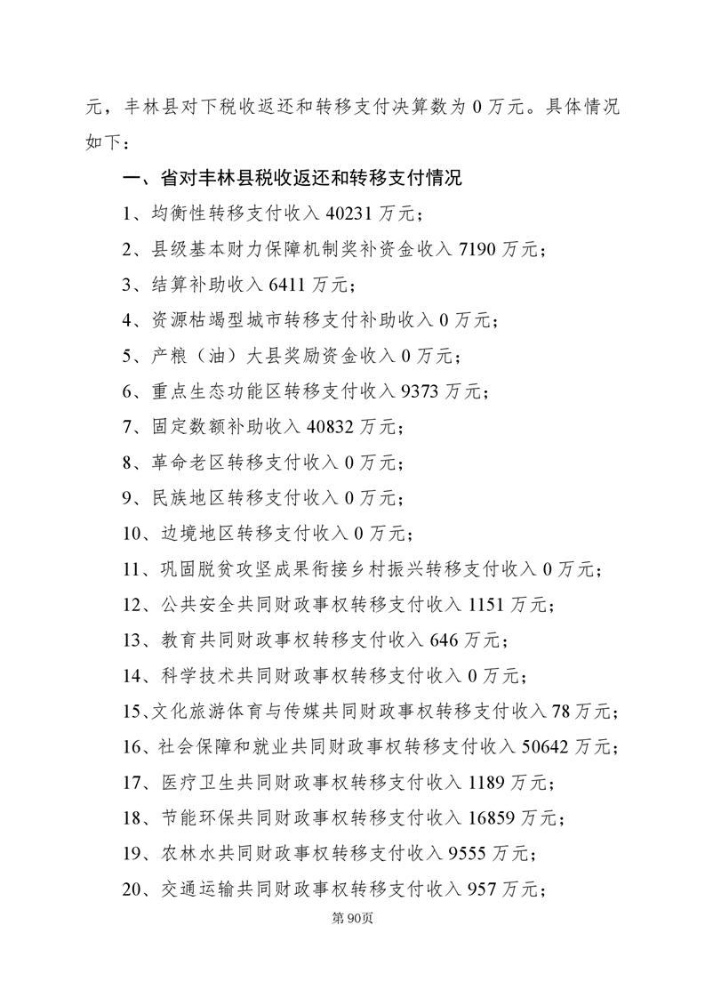 2024年丰林县财政决算公开