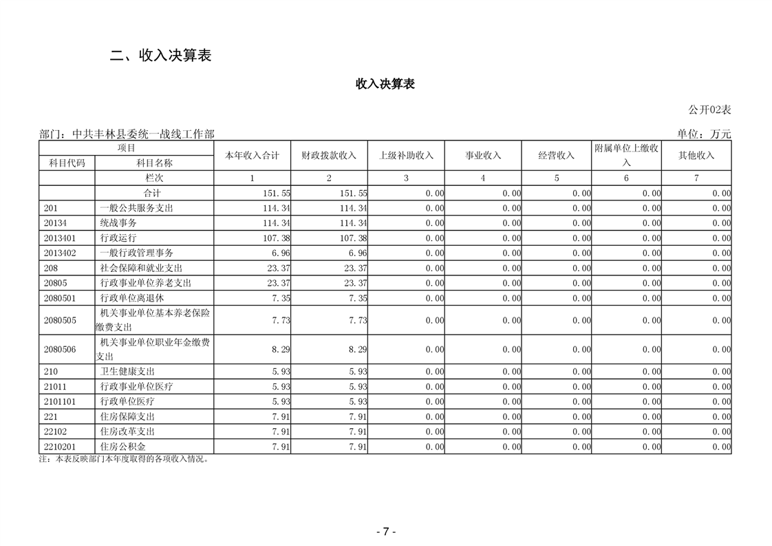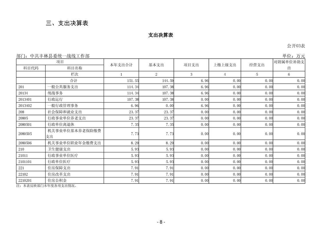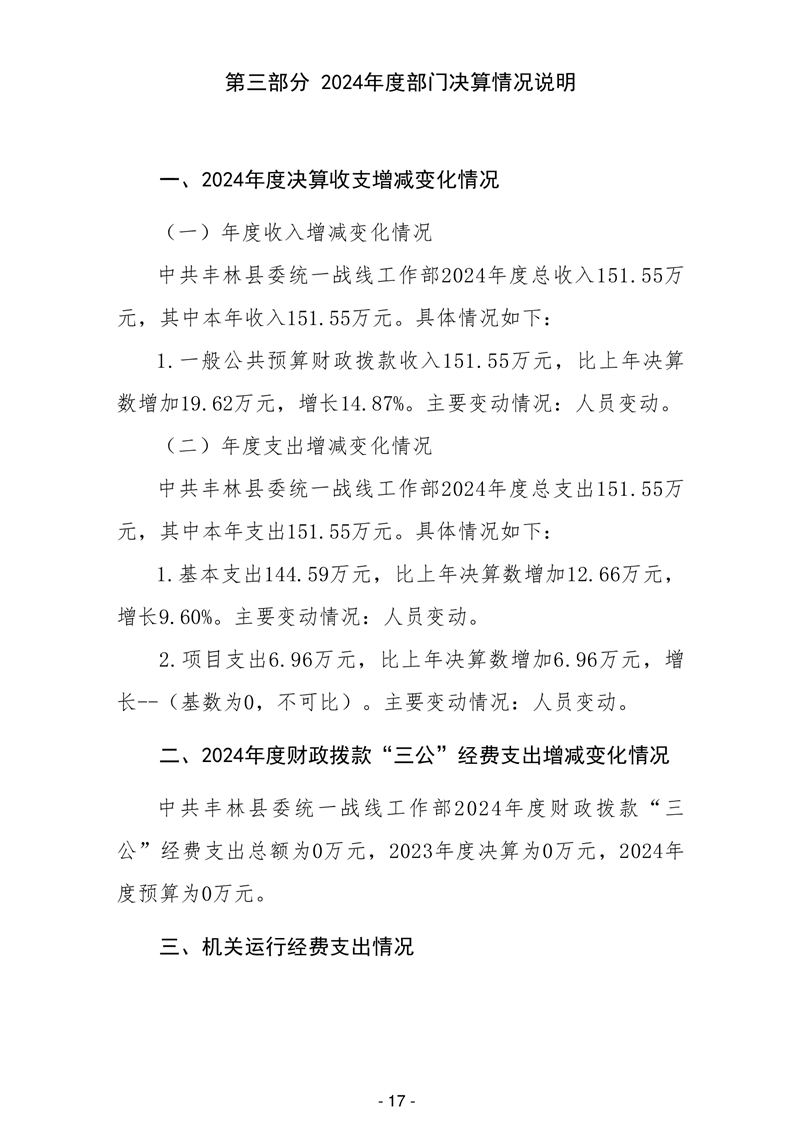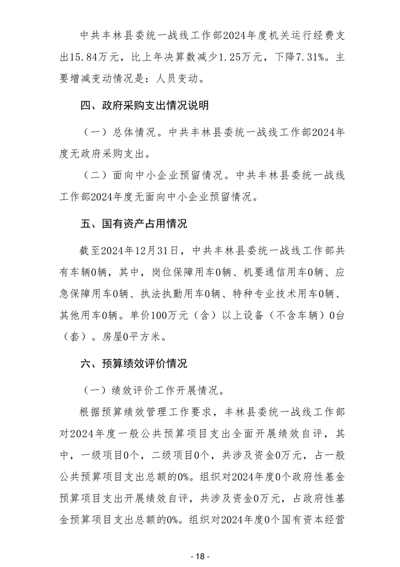 2024年中共丰林县委统一战线工作部部门决算