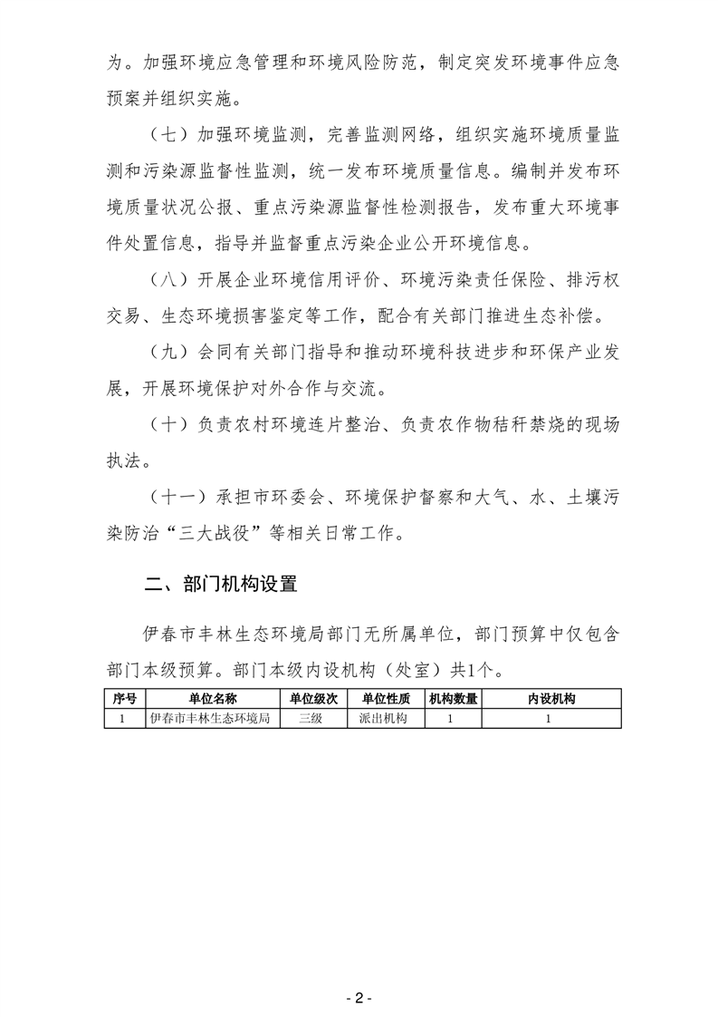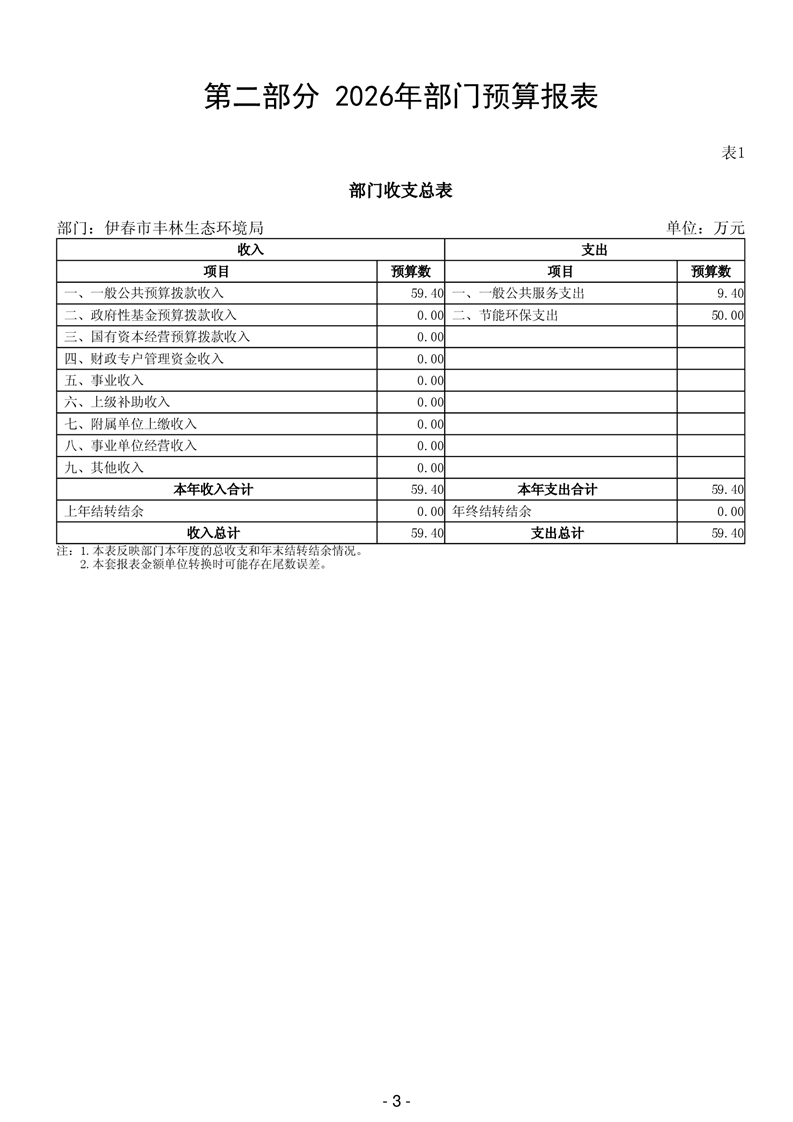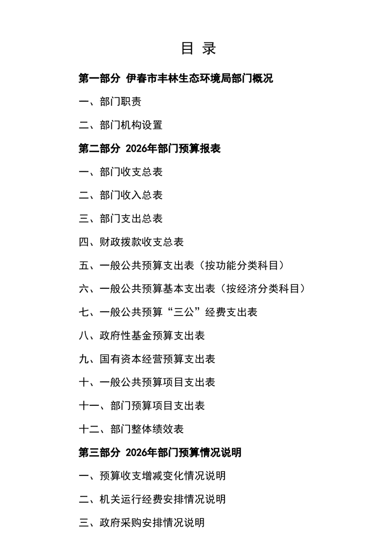 伊春市丰林生态环境局2026年部门预算公开