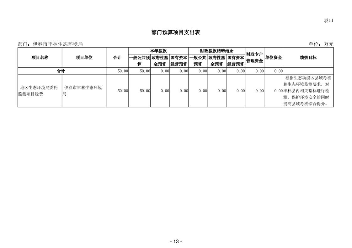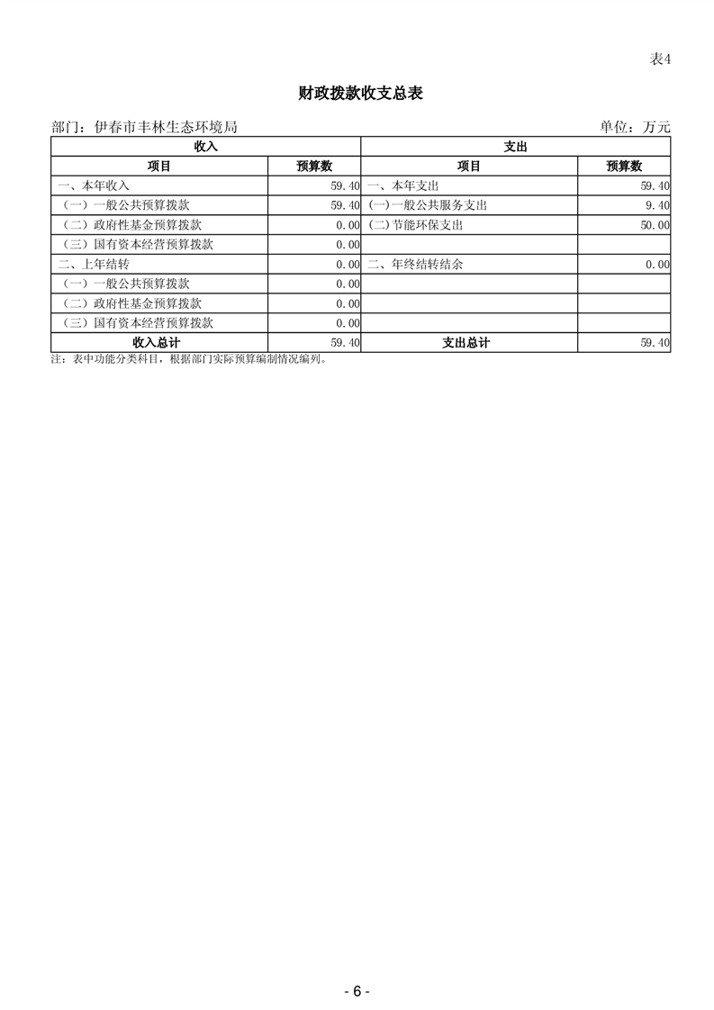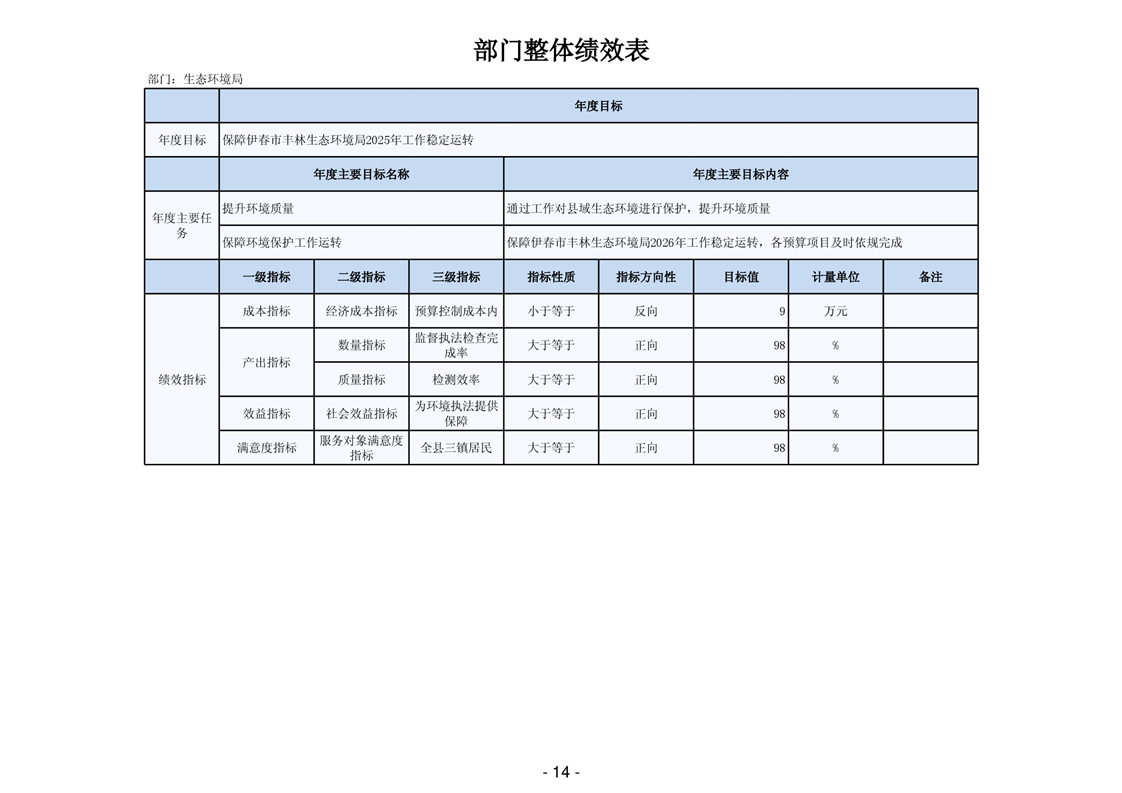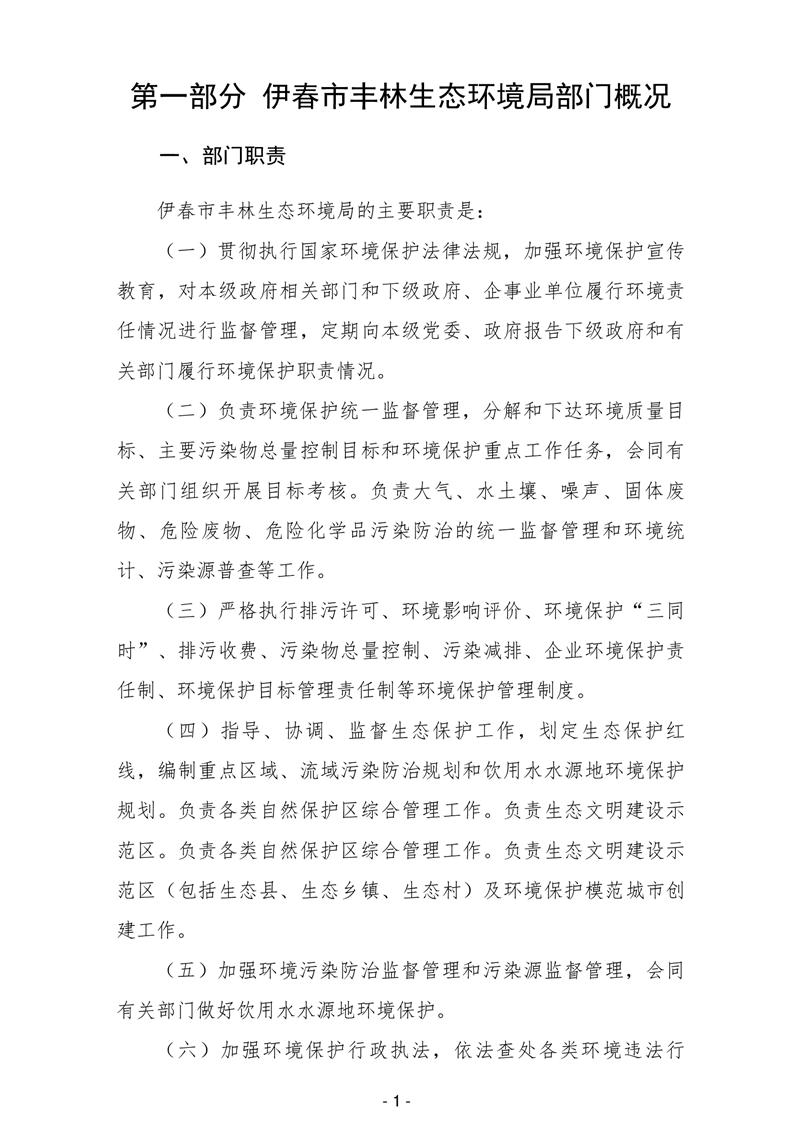 伊春市丰林生态环境局2026年部门预算公开