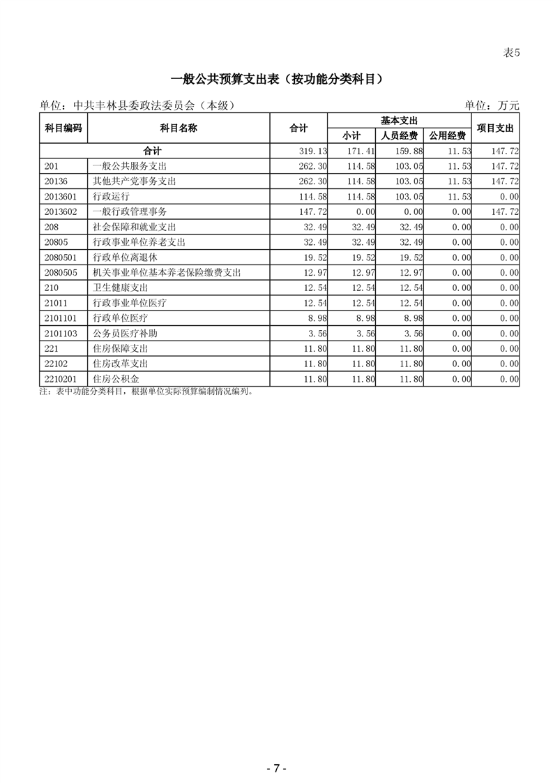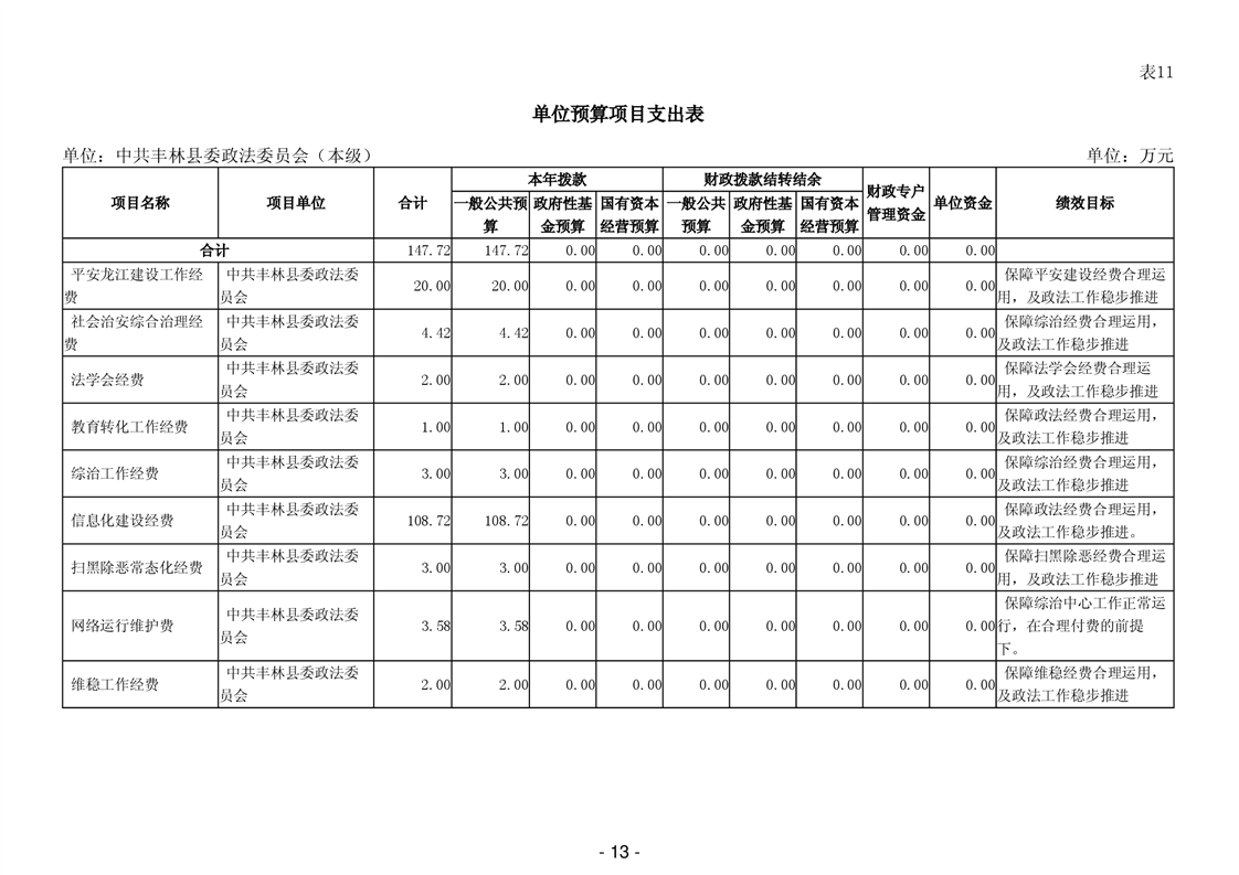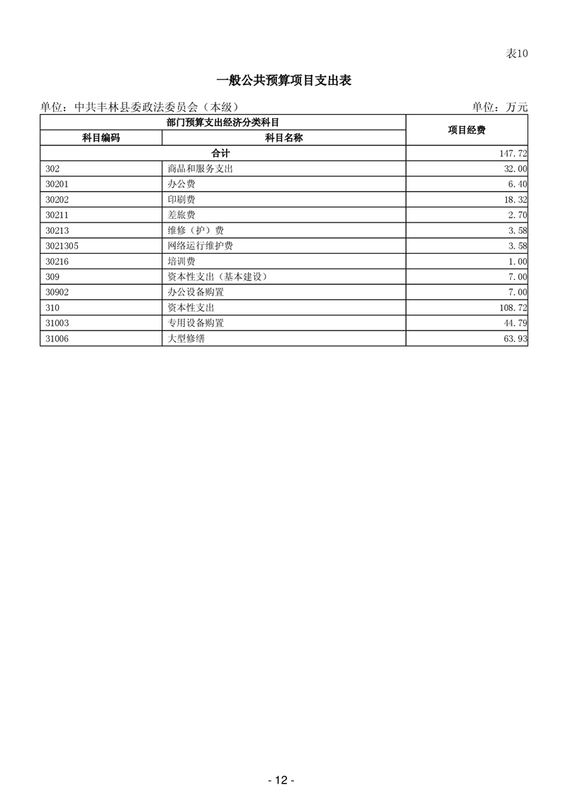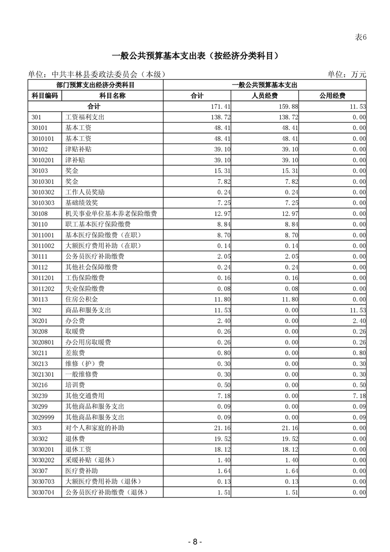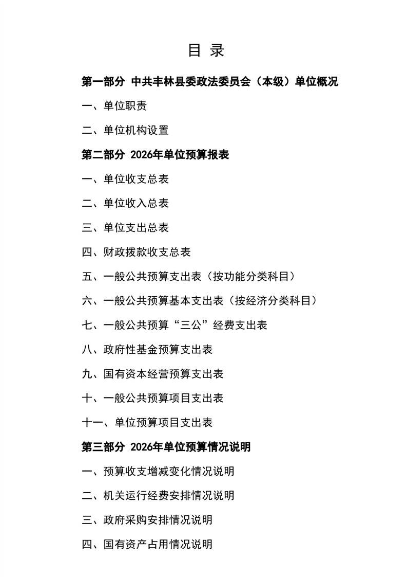 中共丰林县委政法委员会(本级)2026年单位预算公开