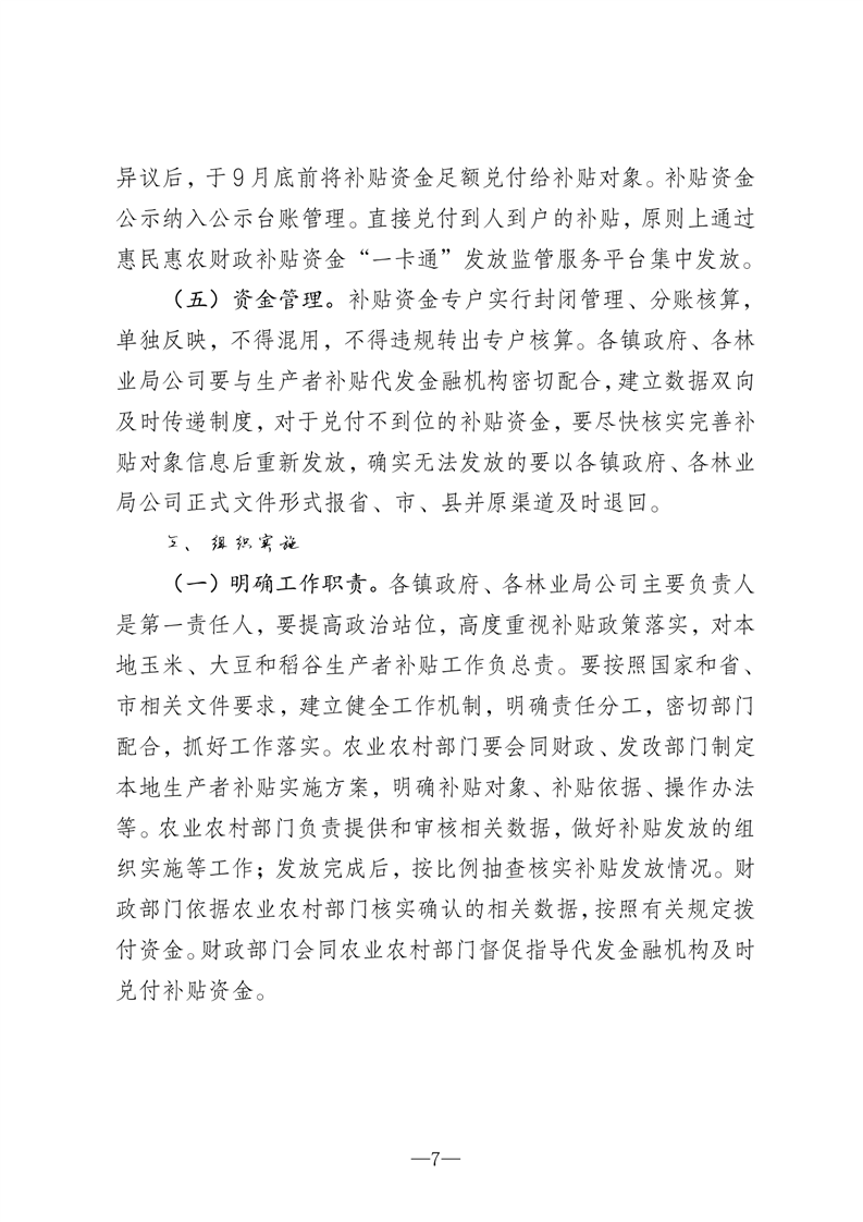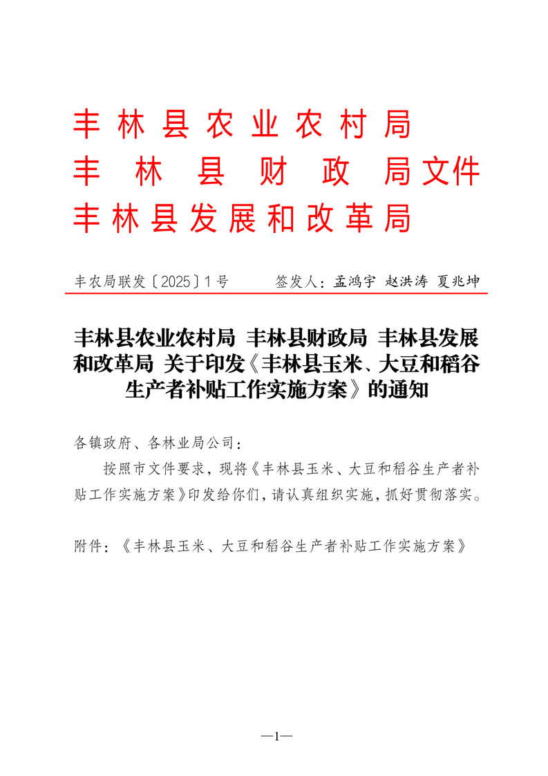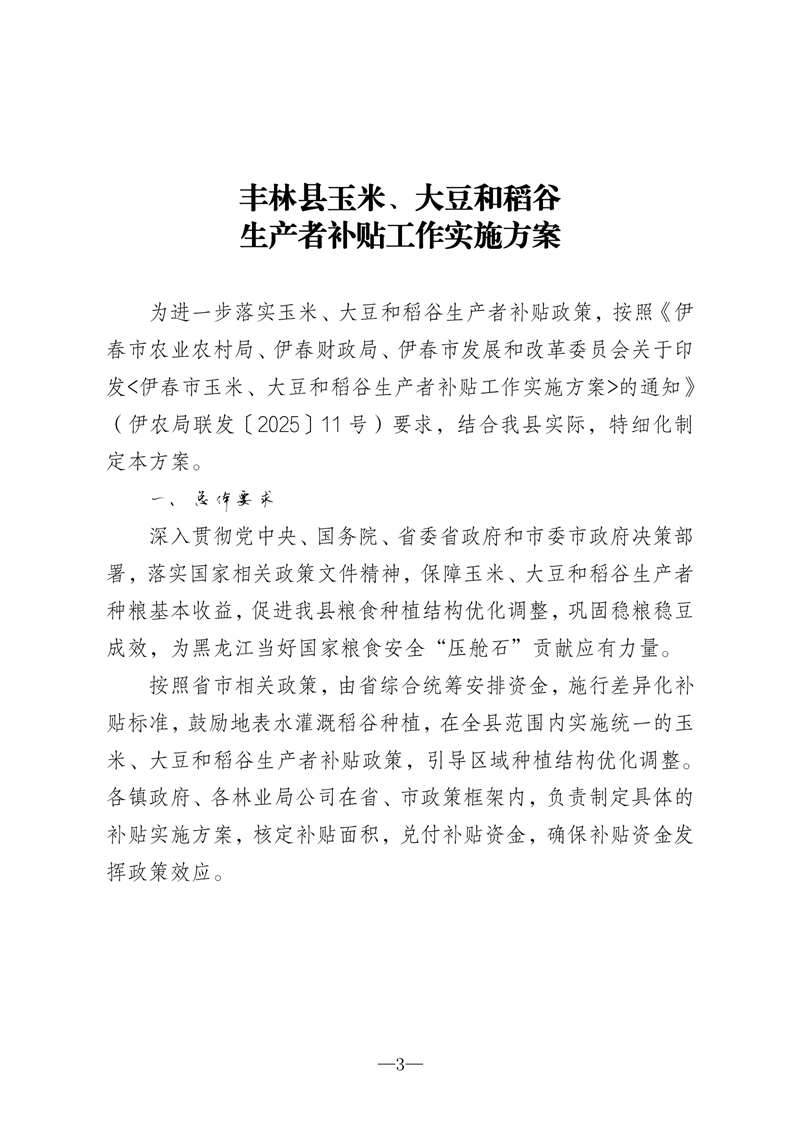 丰林县农业农村局财政和改革局关于印发《丰林县玉米、大豆和稻谷生产者补贴工作实施方案》的通知